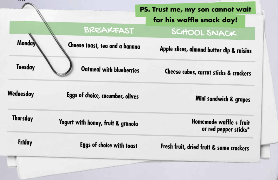 Plan breakfast + snacks every Sunday. Kids get excited, and you avoid the dreaded “But I don’t want THAT.”